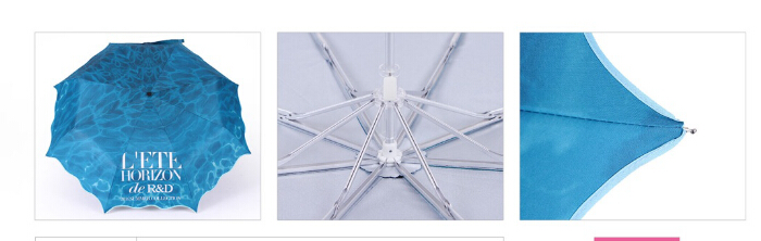 R&D都市時(shí)尚休閑女裝品牌定制專(zhuān)款,采用全鋁加固三折手開(kāi)傘骨,手持輕松、靈巧。傘面將清澈、斑斕的海水圖樣,采用數(shù)碼印花工藝完美、逼真的印在傘上,加之大波浪傘面包邊工藝,進(jìn)一步強(qiáng)化了整傘輕松、獨(dú)特的用戶(hù)體驗(yàn)。