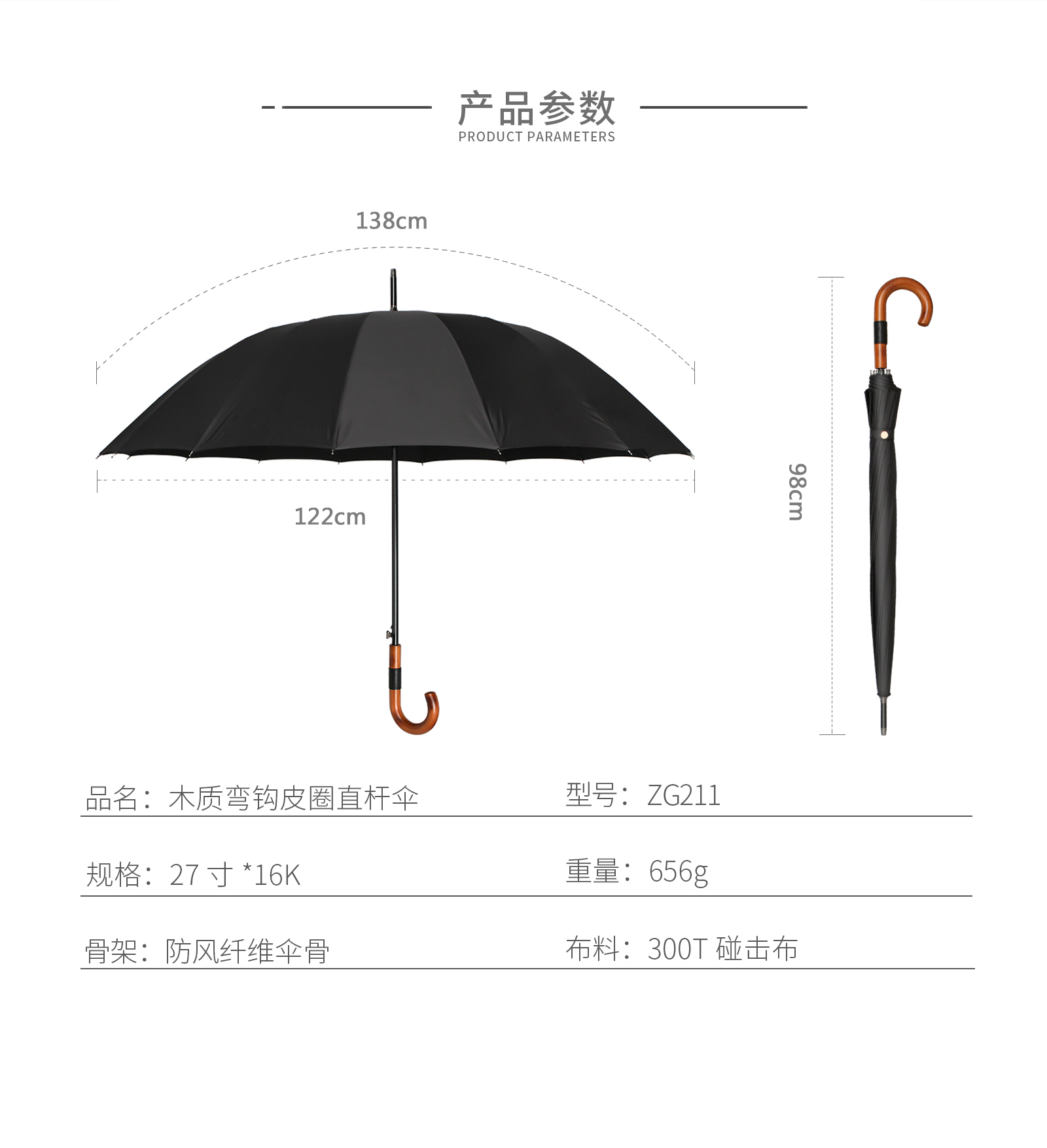 木質(zhì)彎鉤直桿傘